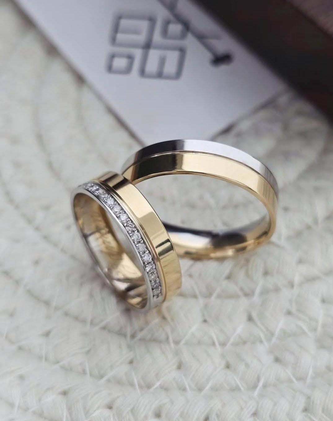 Alianças personalizadas um toque pessoal nas gravações internas tornando uma joia exclusiva para o casal.
